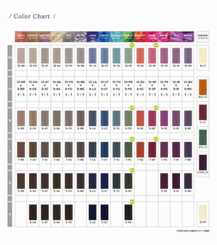 ブリーチ有無を問わずに鮮やかな色を表現し、低迷度からハイトーン、デザインカラーまで多彩な提案をサポートします。